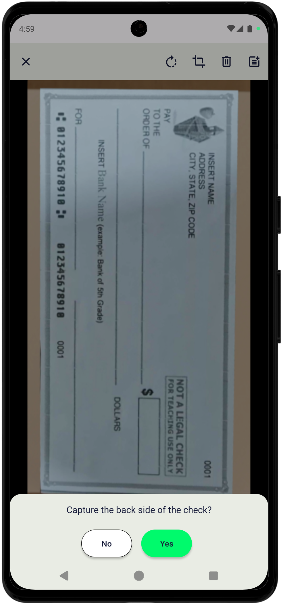 Privacy - Camera Usage Description= "Scan checks for deposit processing"Privacy - Photo Library Additions Usage Description= "Back up check images in your photo gallery"Privacy - Photo Library Usage Description= "Choose check images to process from your photo gallery"