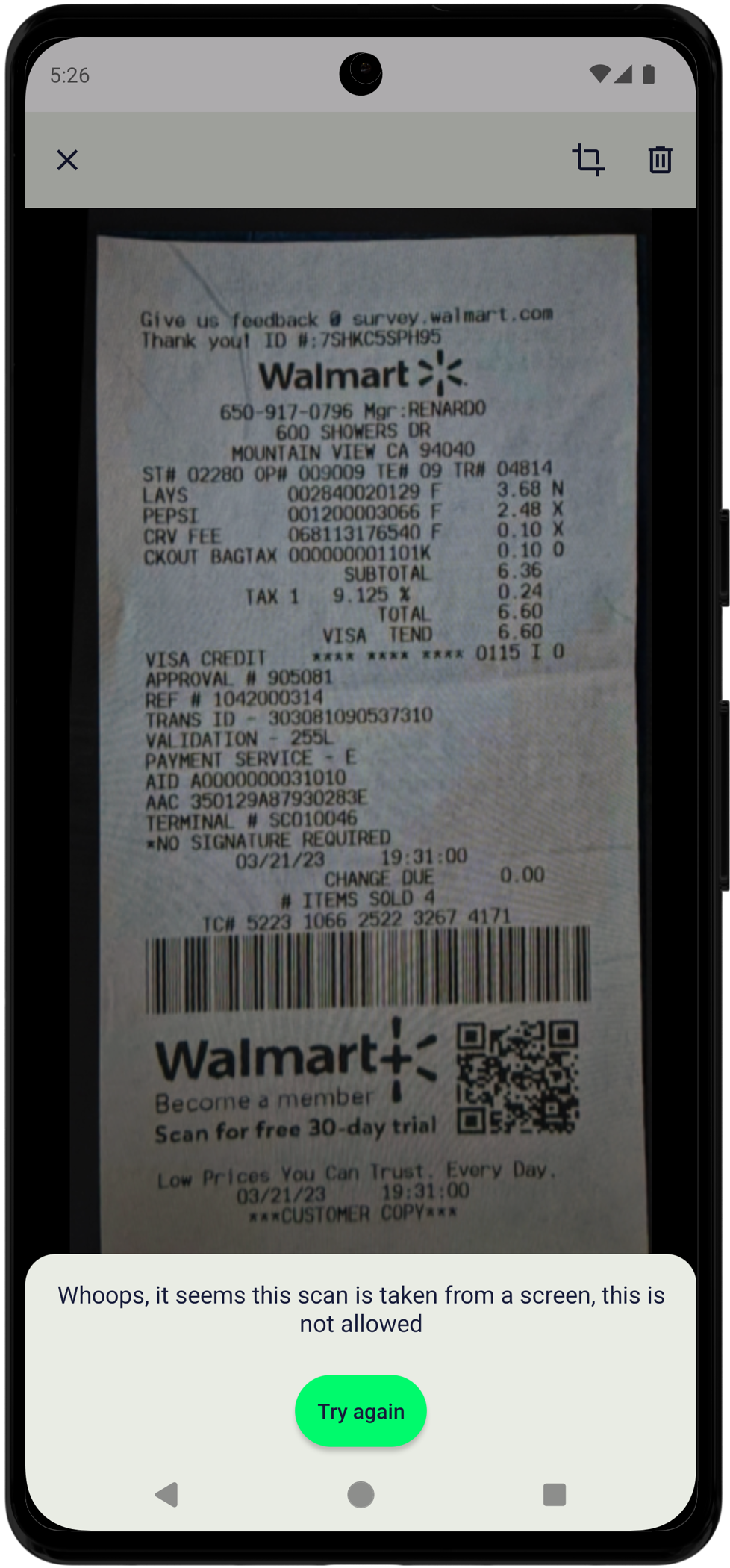 VeryfiLensDelegateinterface to handle the events triggered by Veryfi Lens: