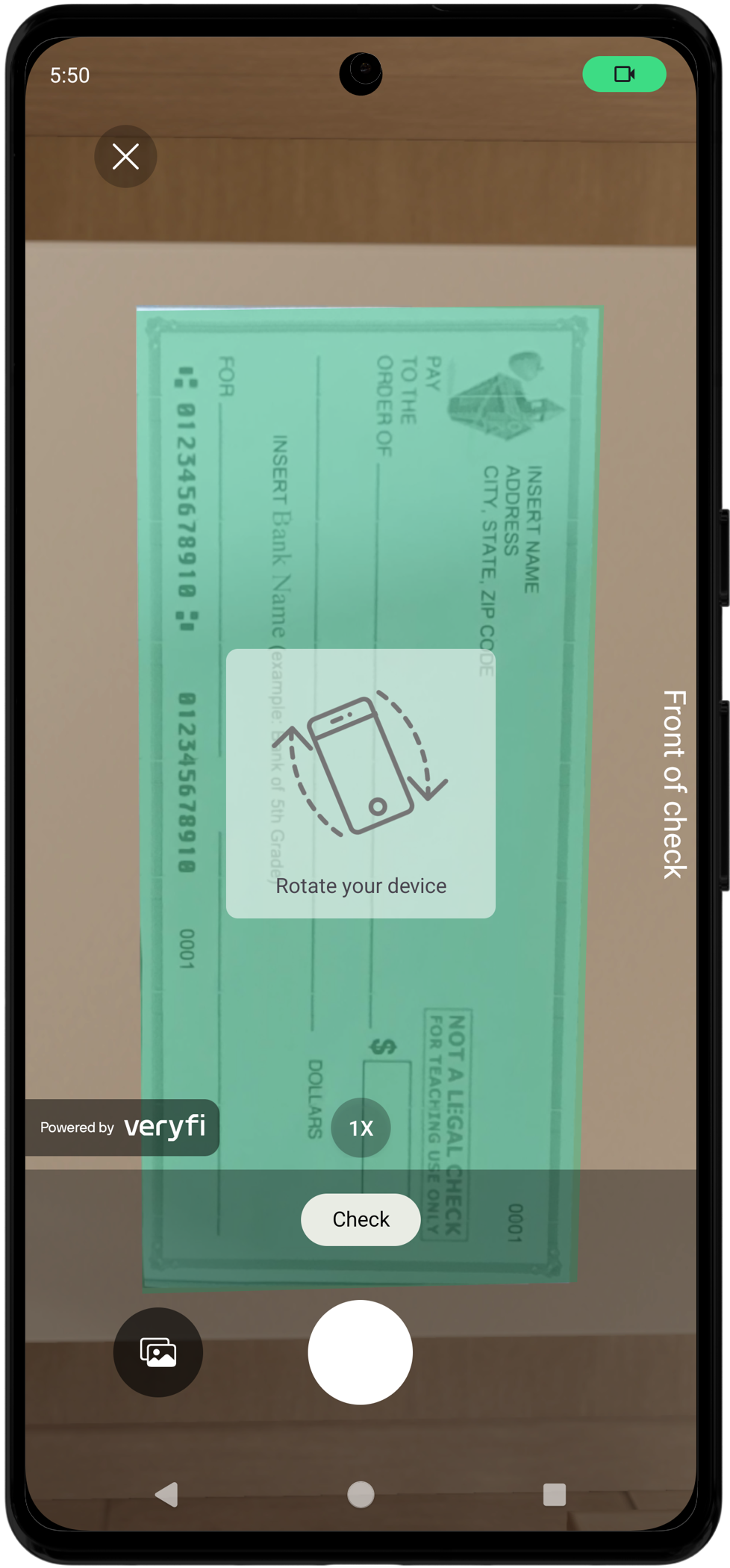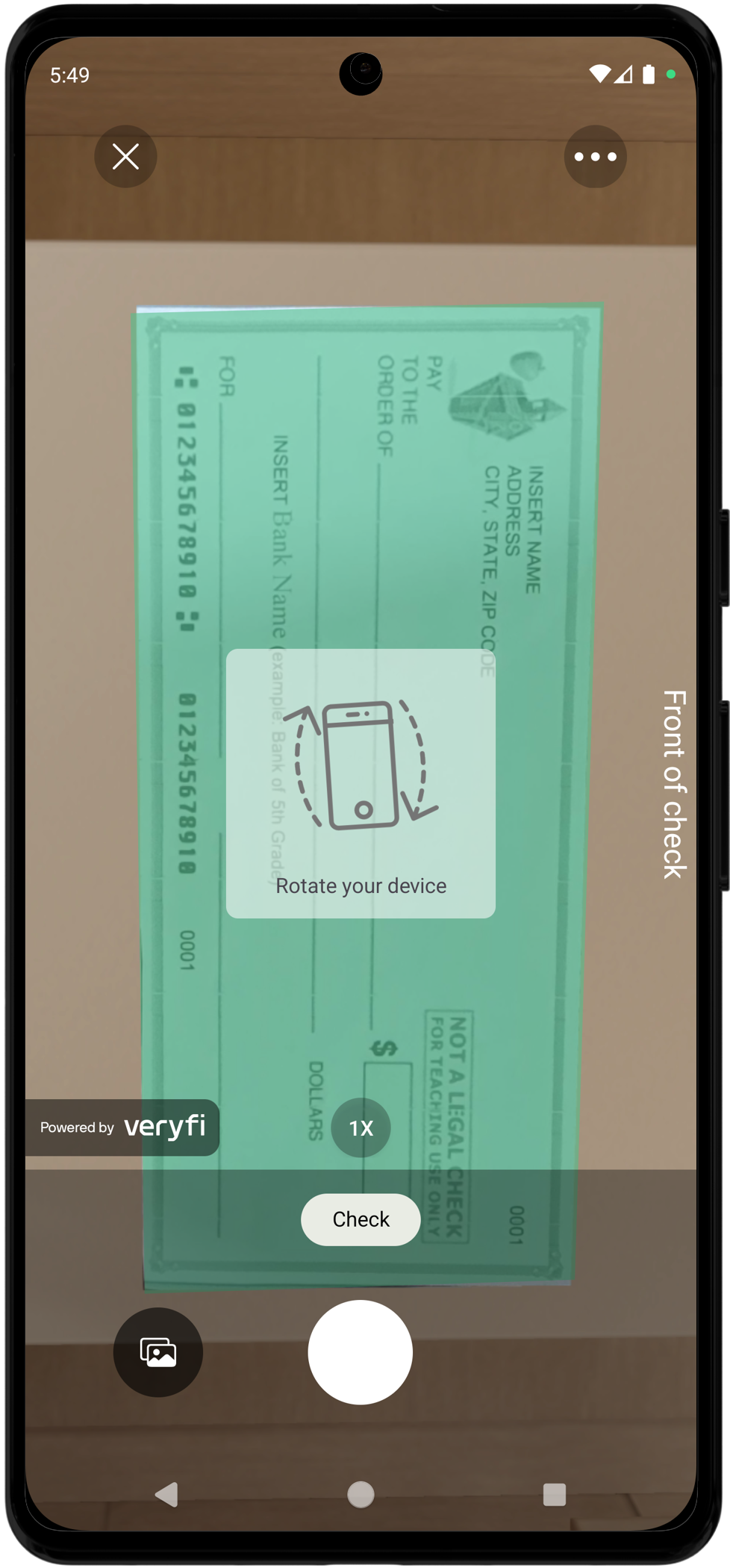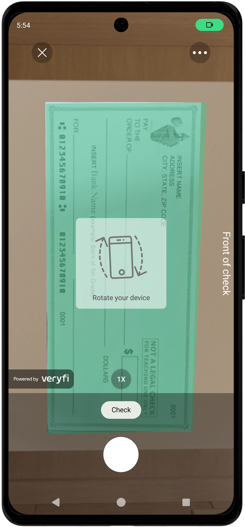 - Configure your Veryfi Lens settings for Checks (Settings documentation: https://docs.veryfi.com/lens/mobile/settings/)